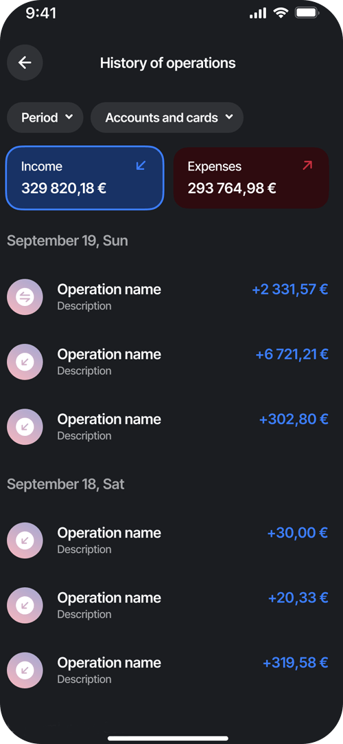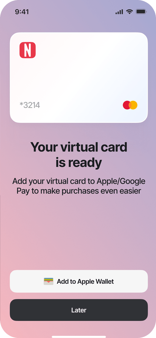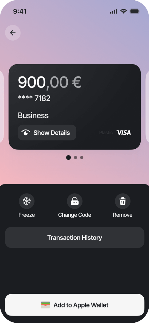 Manage your cards in real time — freeze or unfreeze cards, view card details, track transactions, and pay by card wherever Mastercard is accepted or add your card to Apple Pay or Google Pay for contactless payments.
